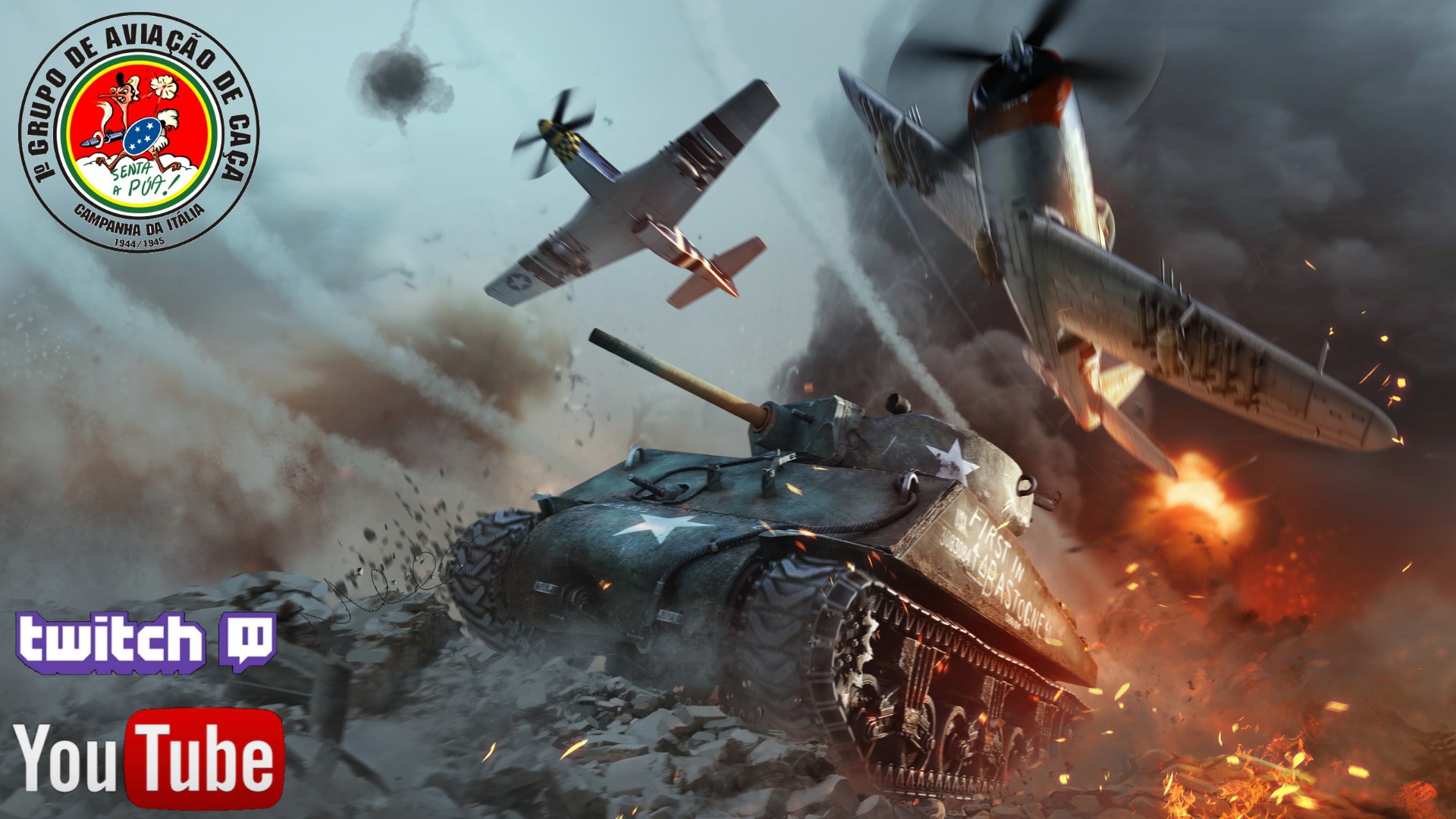 In the background a painting done by me Kleyton Lopes (Jambock_Polaco) for the NA P-51 D-15 at IL-2 Sturmovik Great Battles game.