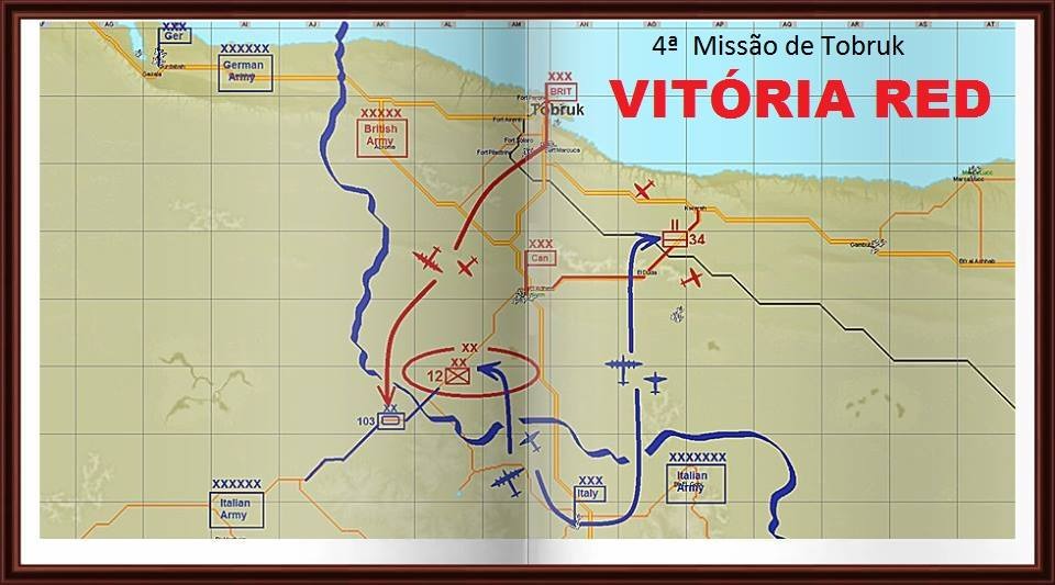 Depois sentamos junto com o comando para conhecer o atual cenário de guerra na região e decidir estratégias para conter a ofensiva alemã. Fomos informados da existência de duas colunas de blindados inimigos se deslocando em direção ao acampamento aliado localizado a oeste de Tobruk.